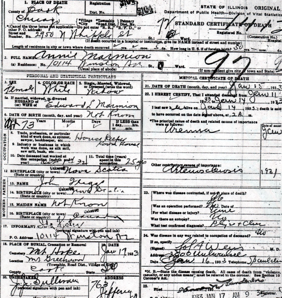 Edward Marmion, son of Richard LS Marmion and Edward's wife Annie, in Chicago IL