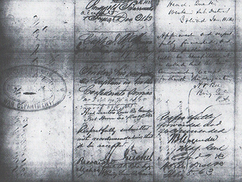 | below, as the resignation travels through the diffrent departments of the Confederate Military You can see Bee, Bushel and othes signature and remarks. |