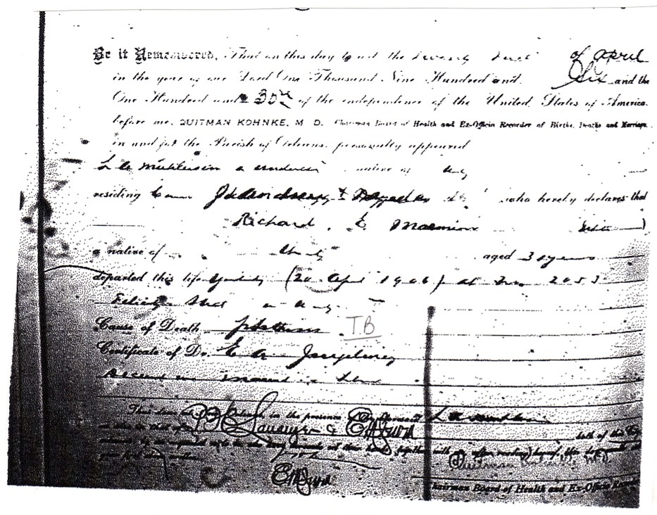 this is the son of Richard LS Marmion, Richard Edward Marmion's death cert. he died young of TB