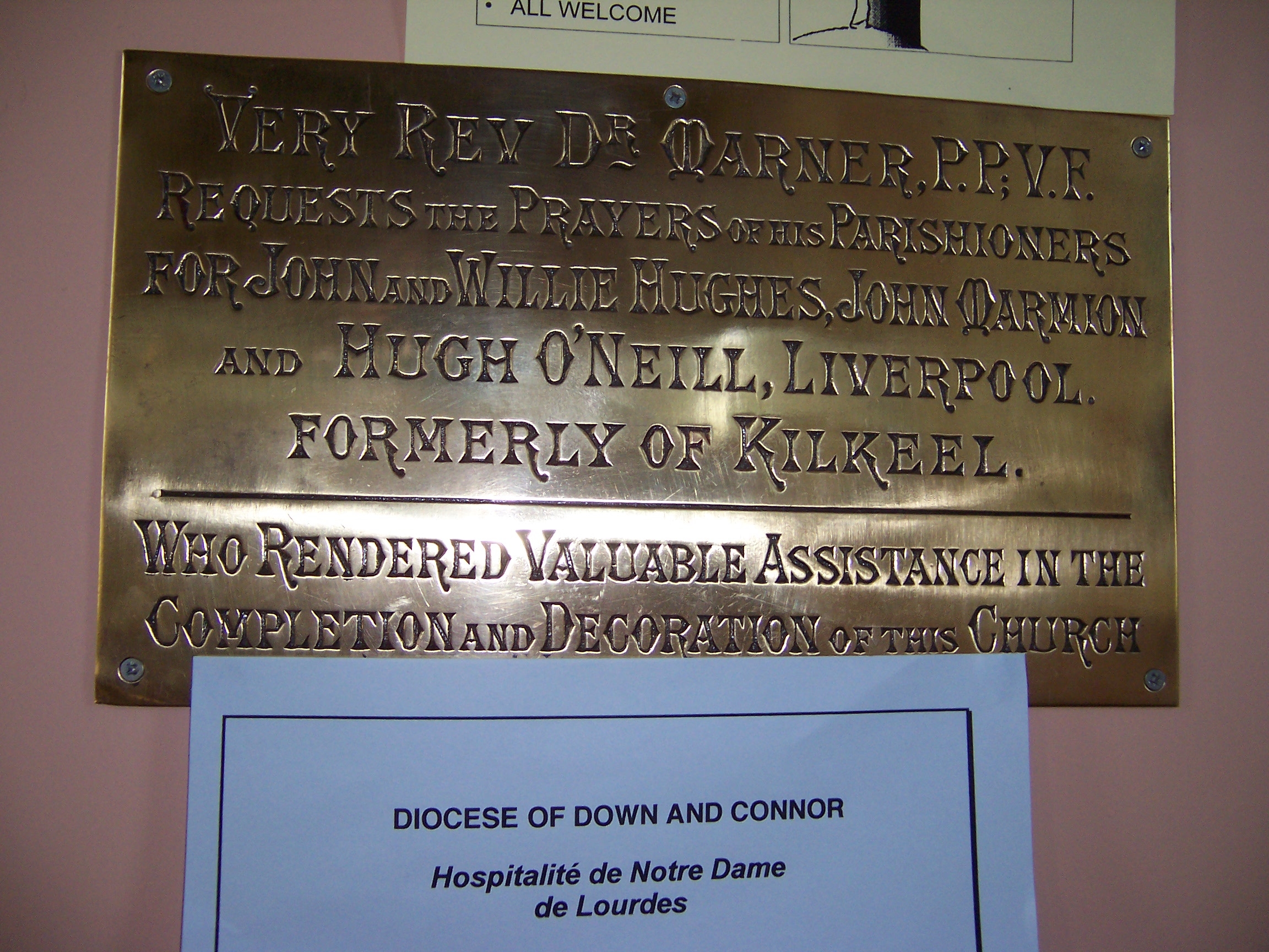Mourne is divided into two catholic parishes, Upper Mourne and Lower Mourne. We are dealing only with Upper Mourne as the Marmions belonged to this parish. The main Catholic church in the parish is St. Colman's also known as Massforth. This church has two outlaying chapels, Our Lady of Lourdes in the townland of Grange - it is usually referred to as Grange Chapel - and was built on a site where Mass was believed to be celebrated in the open air during the penal days. Mrs. Marmion, Sir John's mother gave this site - (see photo below: this is the original field where Mass was held when the Marmions first came to County Down) The other outlaying chapel is in the townland of Atticall and is usually referred to as Attical Chapel. The pre-reformation Catholic Church which was taken over by the Protestant Church of Ireland is now a ruin. It is situated in Kilkeel and was the first church in Mourne dedicated to St. Colman, who was believed to have lived in the 6th/7th century, in the Co. Down area. There are lots of headstones in this old graveyard but none with the name Marmion. This old church was replaced about 1818 by a new Church of Ireland at Newry Street, Kilkeel. It was in this church that Margaret, Jane and Charity Marmion were married.